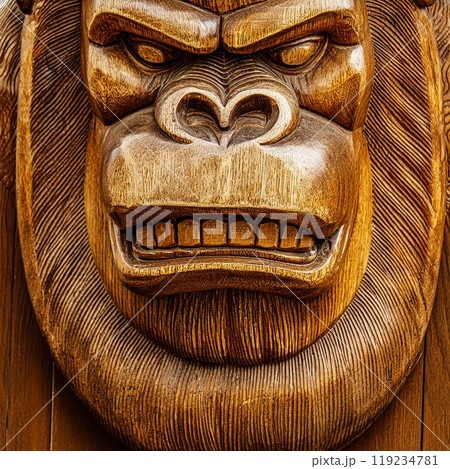 木彫りのゴリラの顔