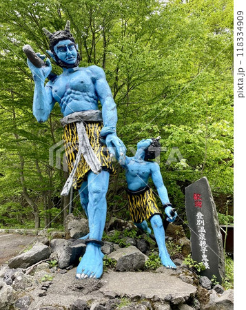 【北海道】登別温泉の青鬼像と自然風景