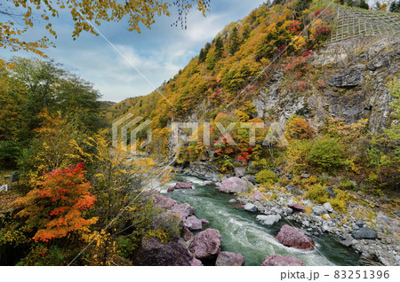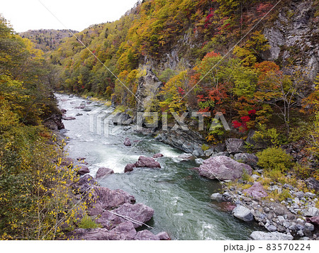 見頃を迎えた赤岩青巌峡の紅葉(北海道 占冠)