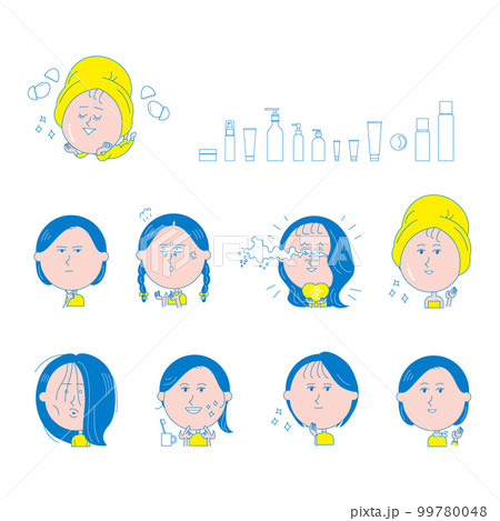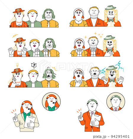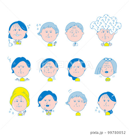 中高生〜シニアのイラストセット_笑顔&不満顔