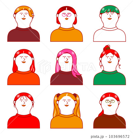 女性と男性の上半身ベクターイラストセット_笑顔&困る