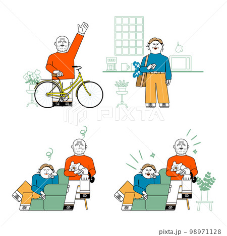 シニア女性と男性の上半身ベクターイラストセット_笑顔&困る