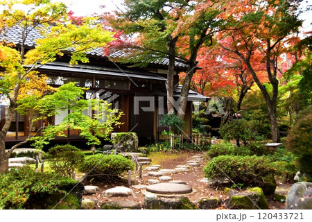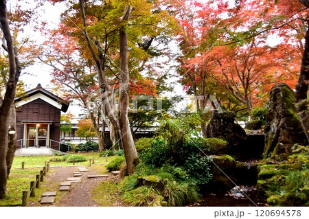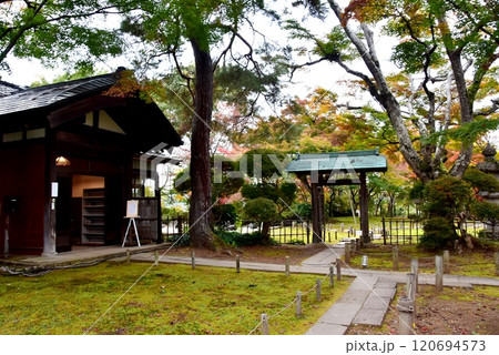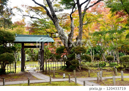 新潟県長岡市 もみじ園の表門と紅葉