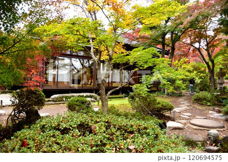 新潟県長岡市 もみじ園の巴ヶ丘山荘と庭園と紅葉