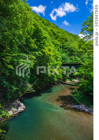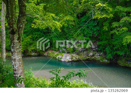 信州 木曽の名勝 巴淵(スローシャッタ) 武将 木曽義仲の愛妾「巴御前」にちなむ竜神がひそむ淵