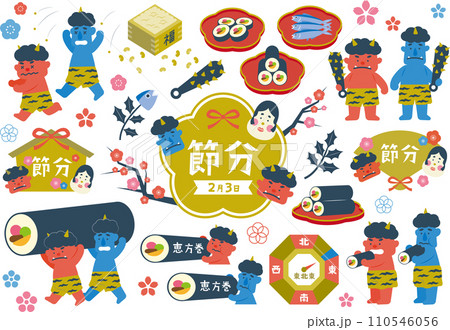 節分、節分セット、節分素材、節分素材セット、節分集合、節分イラスト、節分イラストセット、セツブン、