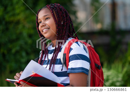 African american boy in eyeglasses with a book in hands looking involved and focused
