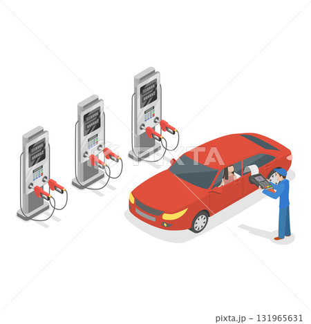 3D Isometric Flat Vector Illustration of Gasoline Self-service, Gas Station with Oil Pump. Item 1
