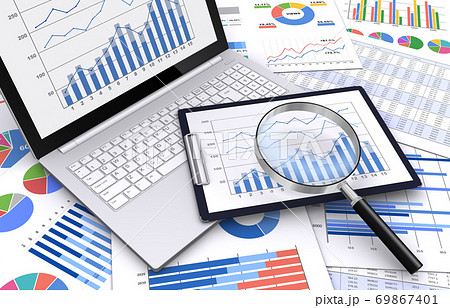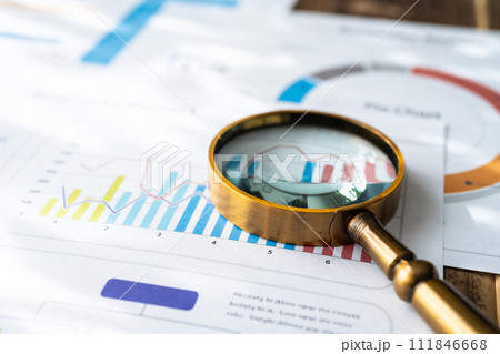 ビジネスグラフと虫眼鏡