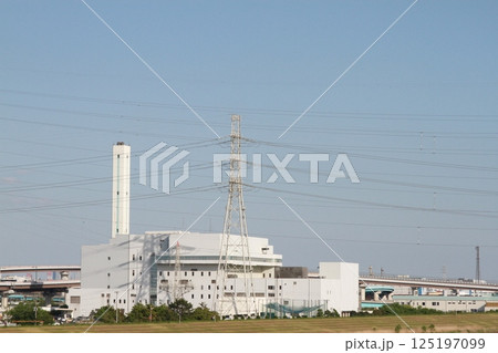 千葉県市川市にある「市川市クリーンセンターと送電線」