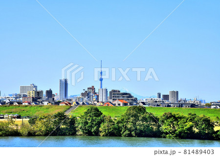 都市風景 ビル群と住宅街 千葉県市川市から東京都葛飾区方面の眺望