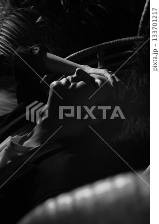 Modern dark leather armchairs feature prominently in a dimly lit, upscale lounge area, providing a comfortable, luxurious, and private waiting experience