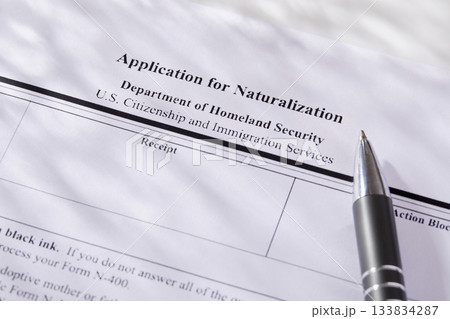Close-up of pen on application for citizenship