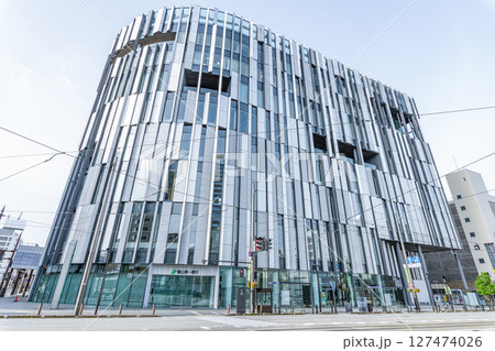 富山県富山市 快晴の富山市ガラス美術館・富山市立図書館本館