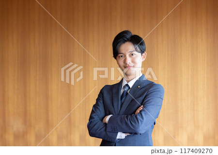 腕組みをする政治家