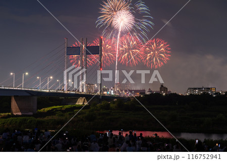 《東京都》打上花火と是政橋・TOKYOシティポップ花火