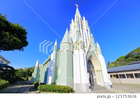 【長崎県】寺院と教会の見える風景(平戸ザビエル記念教会)