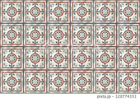 Colorful vintage ceramic tiles wall decoration.Turkish ceramic tiles wall background