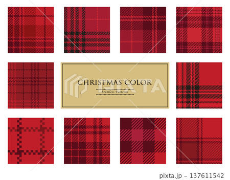 チェック柄の赤・レッド系バリエーションイラスト