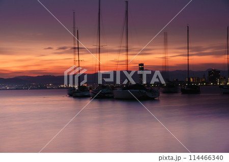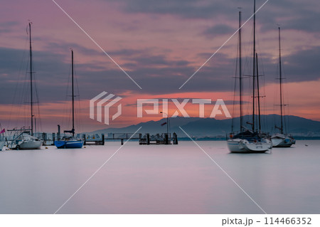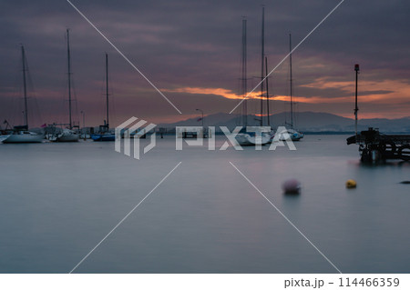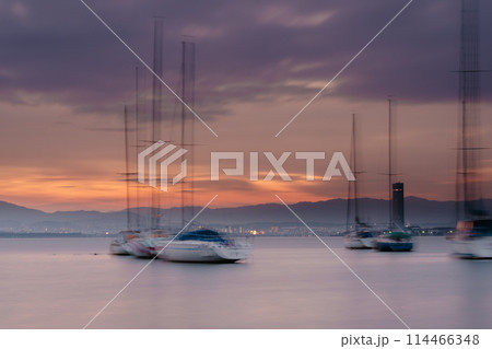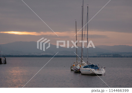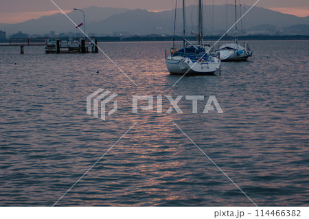 早朝の滋賀県大津市柳が崎ヨットハーバーを撮影したもの