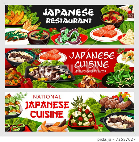 Japanese cuisine vector food banners, asian meals