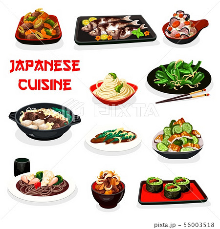Japan food vector menu Japanese meals assortment