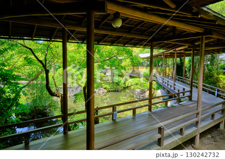 東京都葛飾区柴又7丁目の帝釈天(題経寺)の大回廊から庭園(邃渓園)を見る