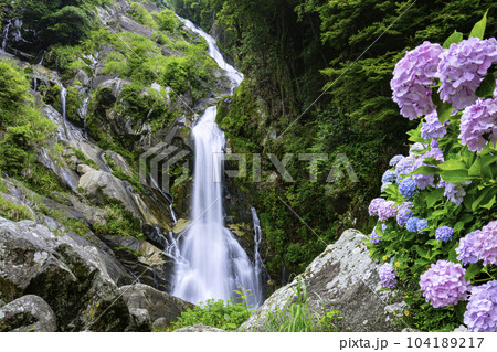 佐賀県唐津市の美しい見帰りの滝 あじさいまつり