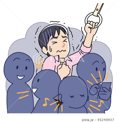 通勤ラッシュの満員電車で疲労する人のイラスト