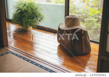 玄関ポーチに置かれたスーツケース