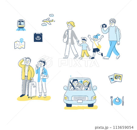 観光やレジャーを楽しむ人物セット