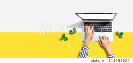Minimalist laptop mockup computer outdoors horizon, with copy space
