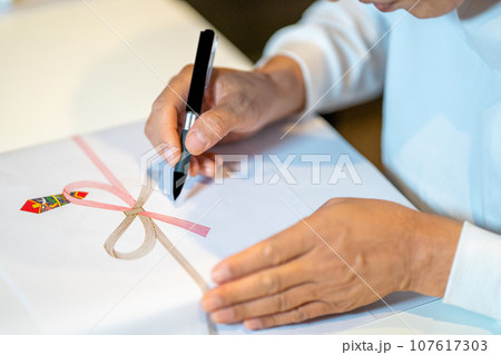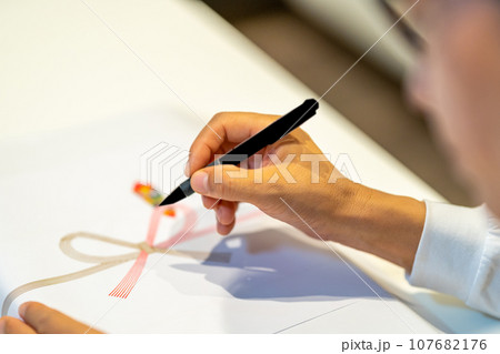 お祝い用ののし紙を使う人物