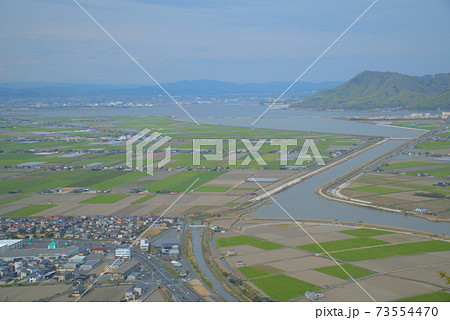 常山 山上から見た干拓地と児島湖 岡山県玉野市