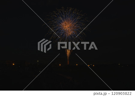 常滑焼まつり協賛花火大会の夜空に咲く大輪の花(愛知県)オレンジ色で美しく放物線を描く花火