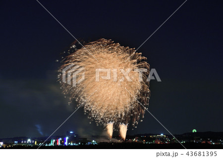 常滑焼まつり協賛花火大会の夜空に咲く大輪の花火の風景(愛知県)