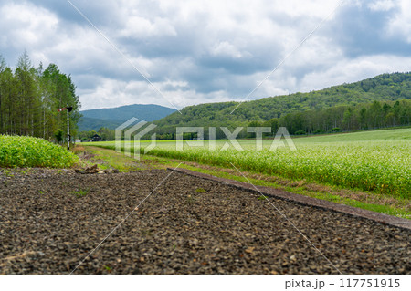 旧JR深名線 沼牛駅前に広がるそば畑 北海道
