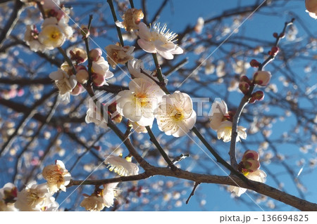 青空に映える満開の梅の花 神奈川県湯河原町・幕山公園の春を彩る日本の風景