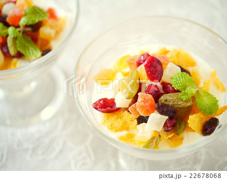 ドライフルーツミックスシリアル (縦位置ハイアングル)