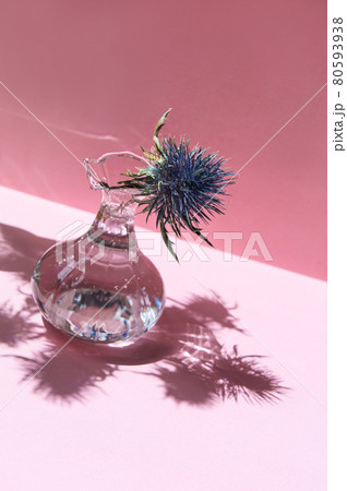 Blue exotic flower sunlight shadow. Floral arrangement