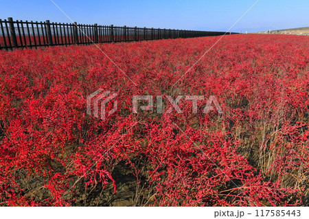 【佐賀県】快晴の干潟よか公園のシチメンソウ群生地