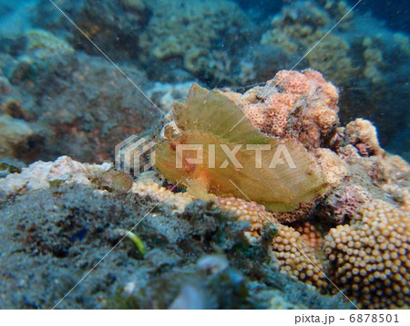 小笠原諸島・父島のサンゴ礁に佇む黄色のハダカハオコゼ