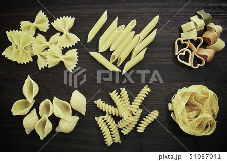 色々なショートパスタ(ペンネ、フェットチーネ(Fettuccine)、ファルファッレ(Farfal