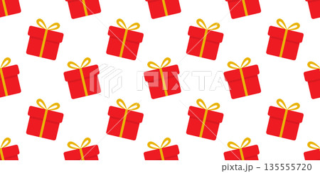 Gift Boxes Front View with tied Ribbon Bow Seamless Pattern Minimalist Flat Backdrop Banner Format. Isolated Vector illustration Promo Banner Background Poster Holidays Themed Cards, leaflets, labels