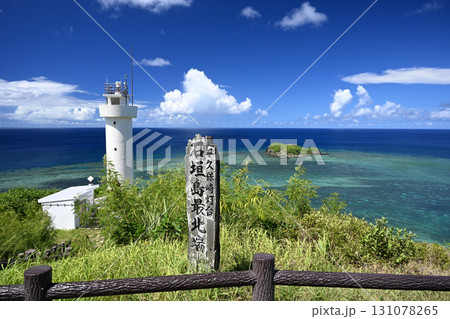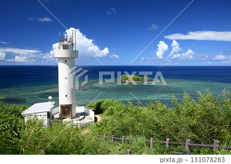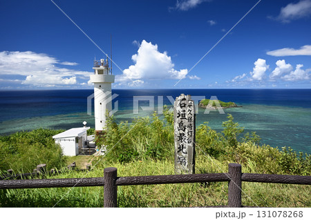 石垣島 平久保半島の先端、平久保埼 平久保埼灯台と大地離島を望む