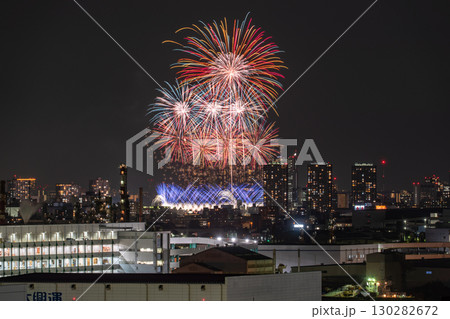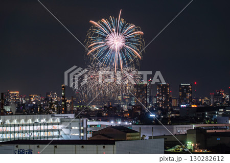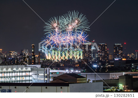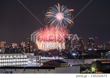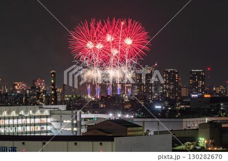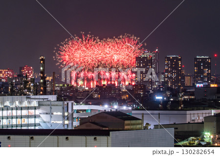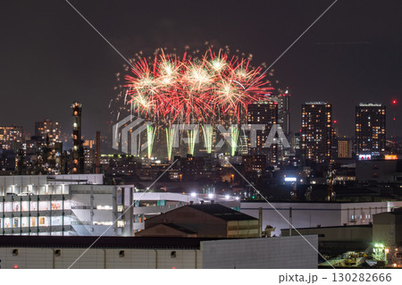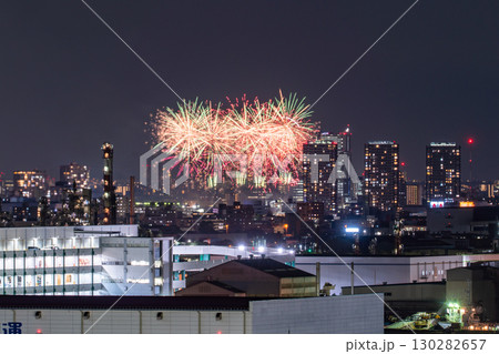 《神奈川県》都市風景の花火大会・大田区平和祈念花火《川崎市より撮影》