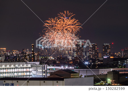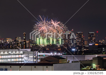 《神奈川県》都市風景の花火大会・大田区平和祈念花火《川崎市より撮影》