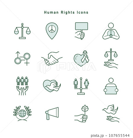 人権・平和・紛争解決に関するアイコンのセット