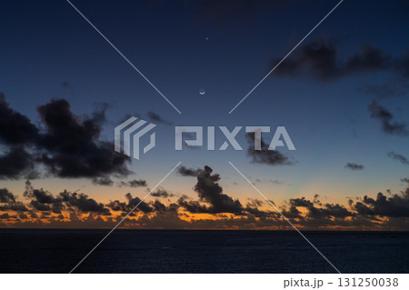 沖縄絶景 東平安名崎に浮かぶ夜明けの月