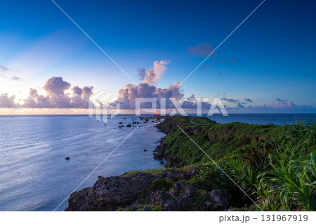 沖縄県 宮古島 朝焼けの東平安名崎 灯台